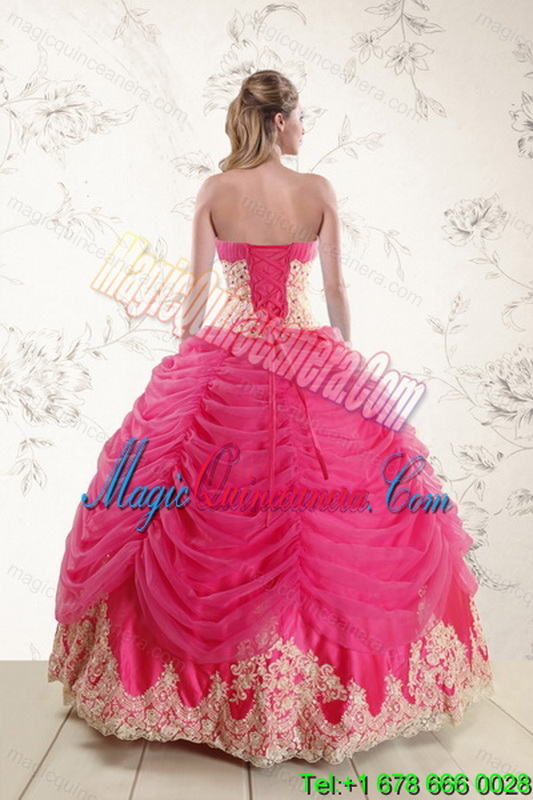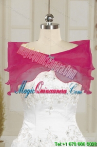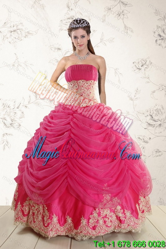 , Dramatic 2015 Strapless Hot Pink Quinceanera Dresses with Beading and Lace
