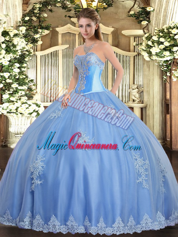 Dramatic Baby Blue Sleeveless Floor Length Beading and Appliques Lace Up Vestidos de Quinceanera
