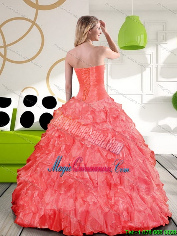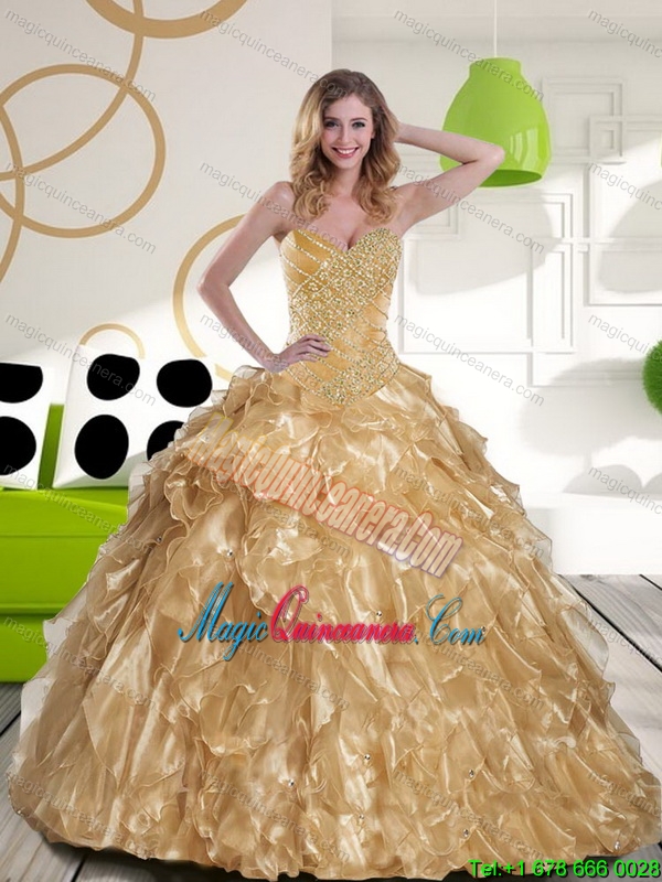 , Dramatic Beading and Ruffles Sweetheart 2015 Champagne Quinceanera Gown
