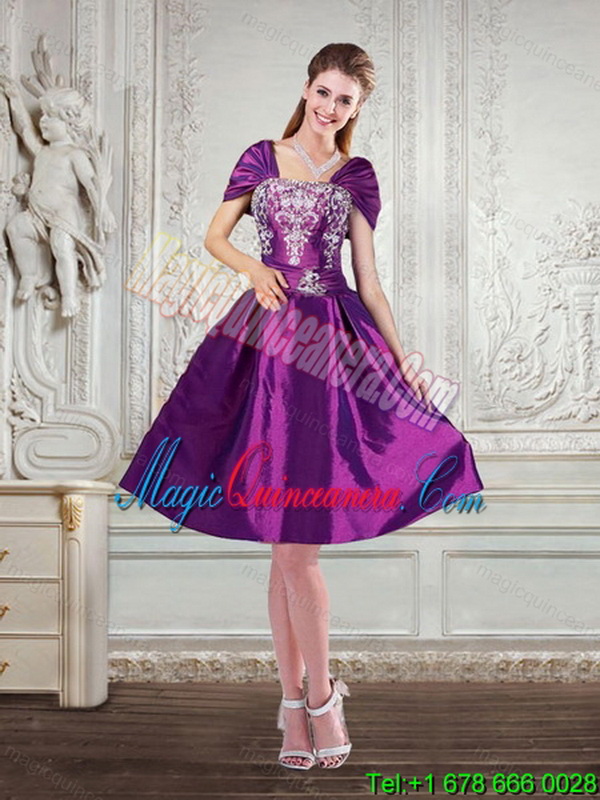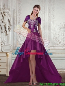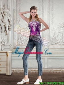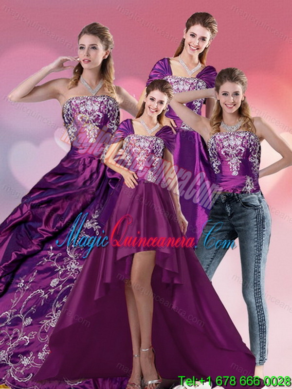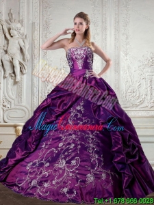 , Dramatic Embroidery Strapless Quinceanera Dress in Purple for 2015