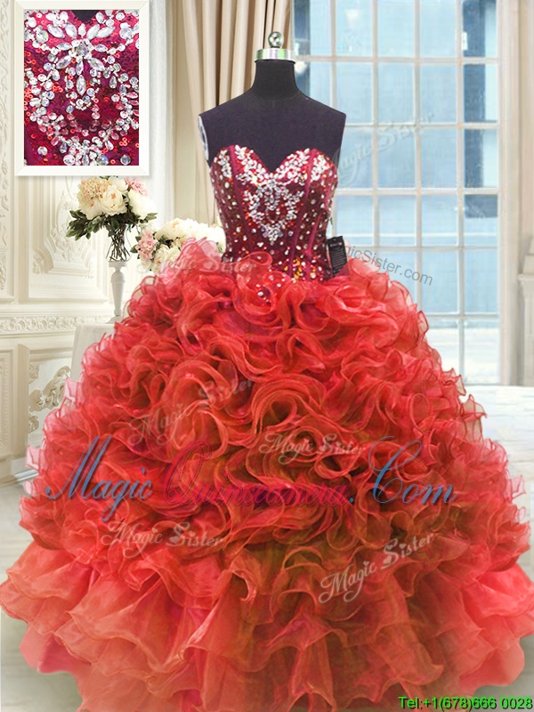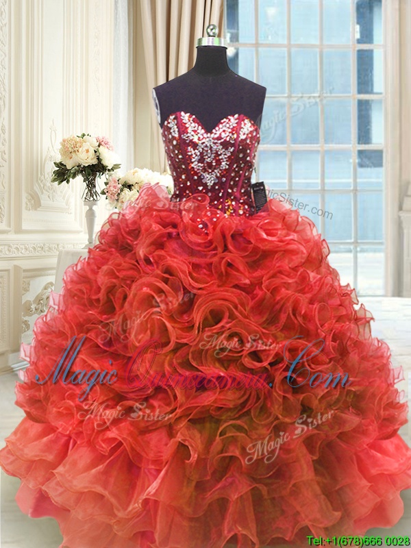 , Dramatic Floor Length Ball Gowns Sleeveless Wine Red Quinceanera Gown Lace Up