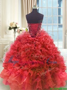 Dramatic Floor Length Ball Gowns Sleeveless Wine Red Quinceanera Gown Lace Up