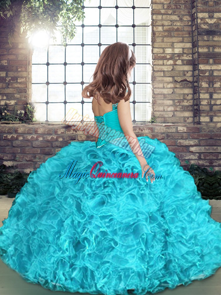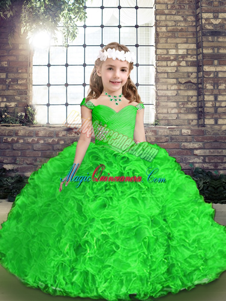 Dramatic Green Straps Neckline Beading and Ruffles Evening Gowns Sleeveless Lace Up