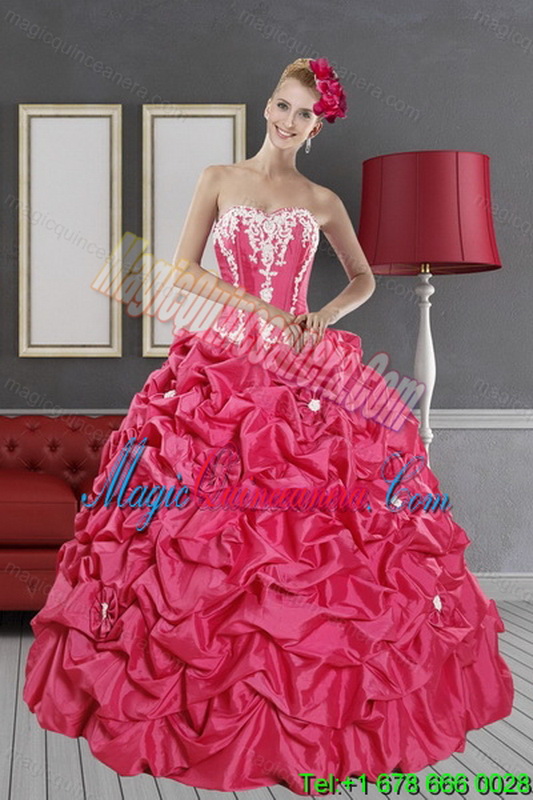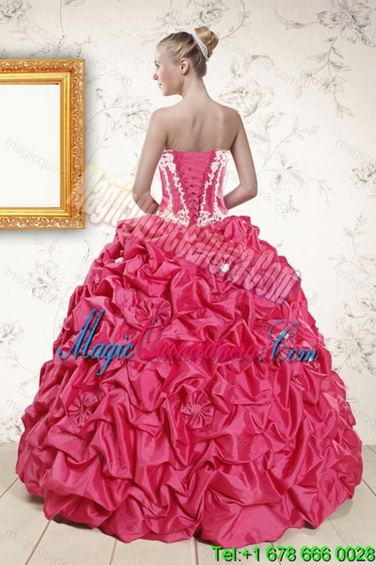 , Dramatic Hot Pink Dresses for Quince with Pick Ups and Appliques