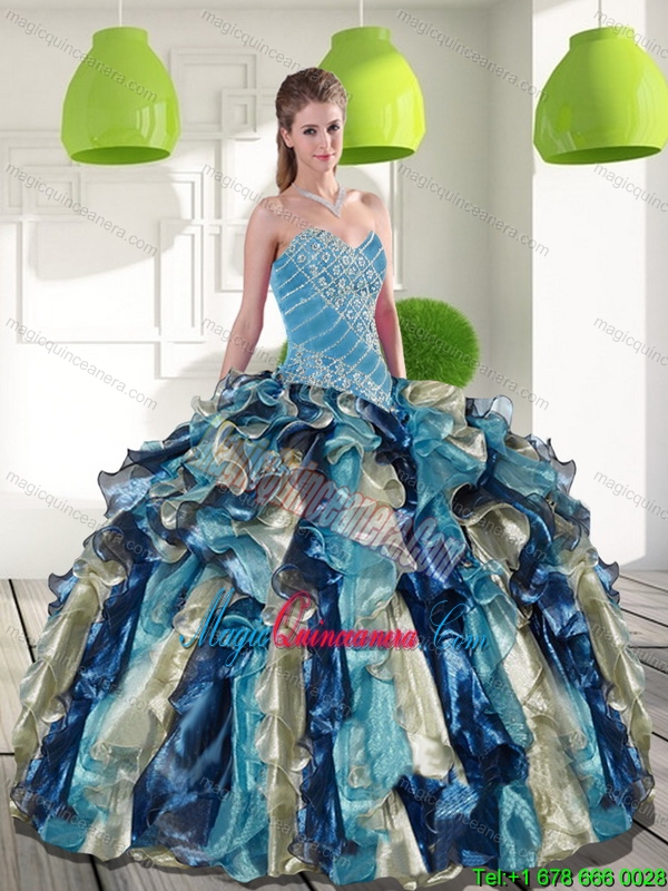 , Dramatic Multi Color Quinceanera Dresses with Beading and Ruffles for 2015