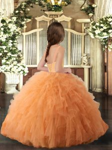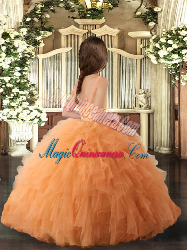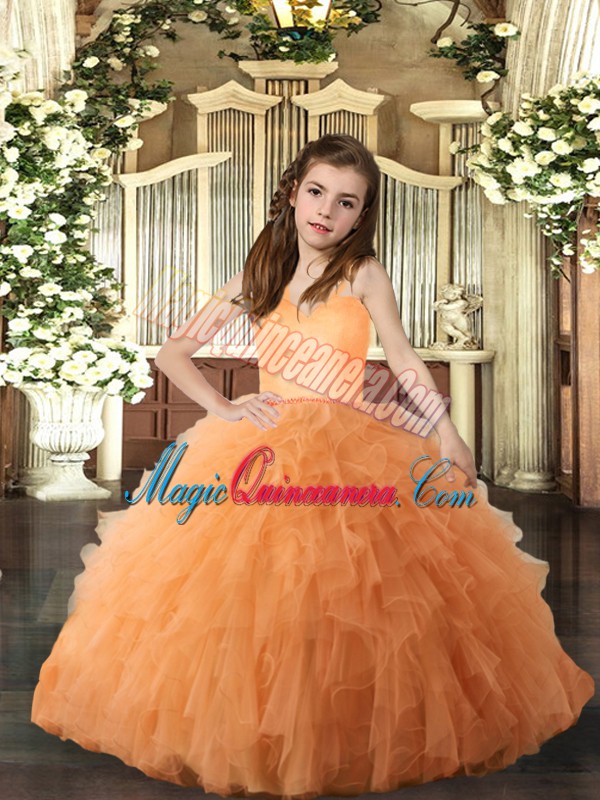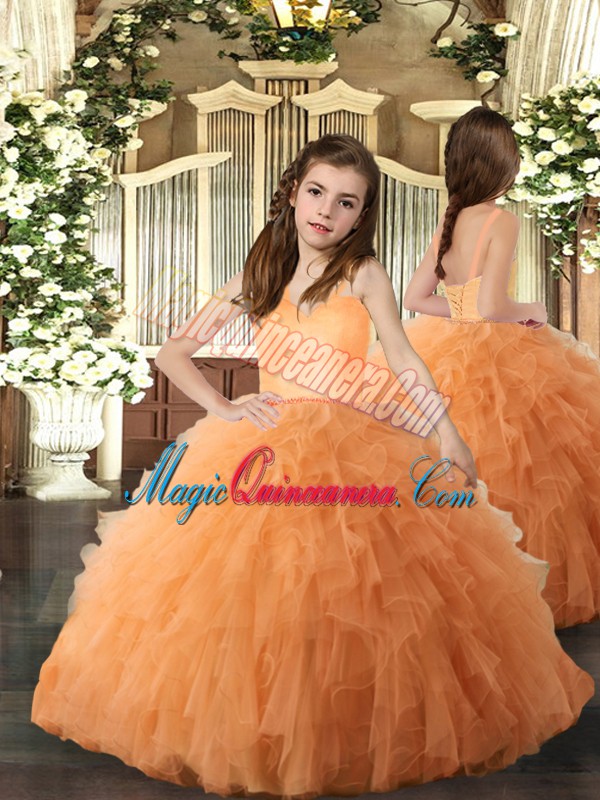 Dramatic Orange Straps Lace Up Ruffles Pageant Dress for Teens Sleeveless