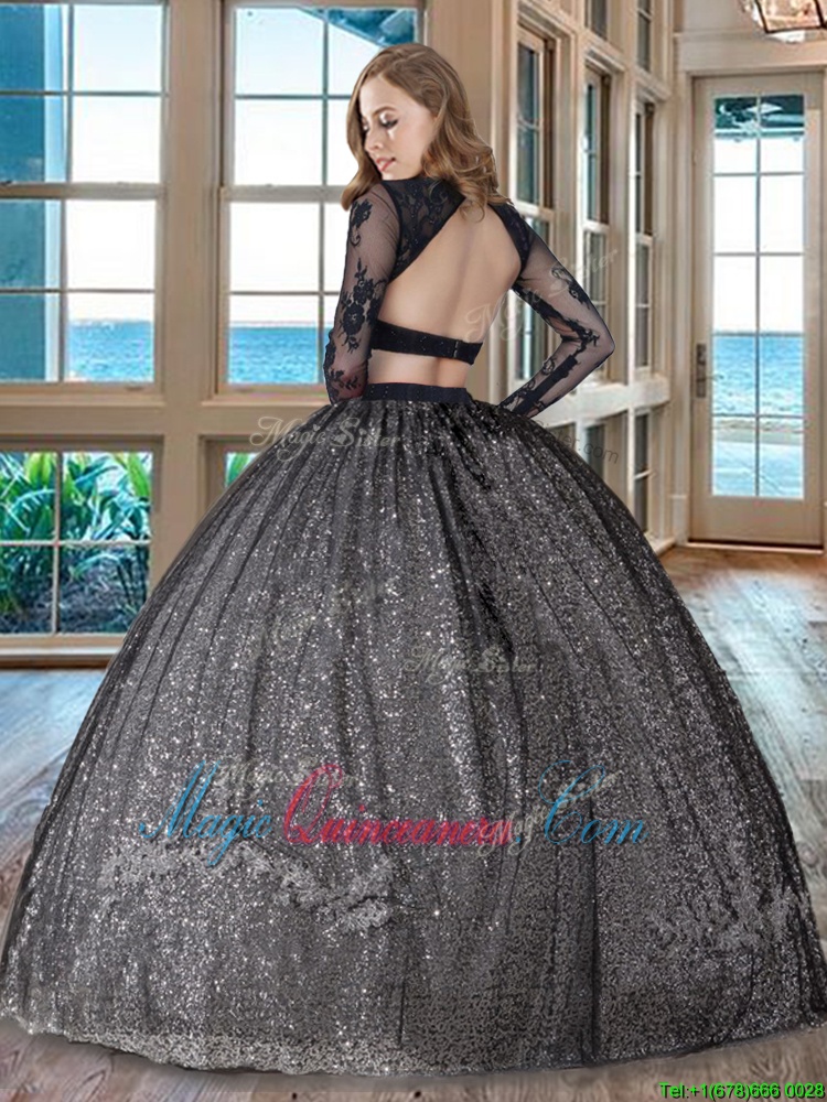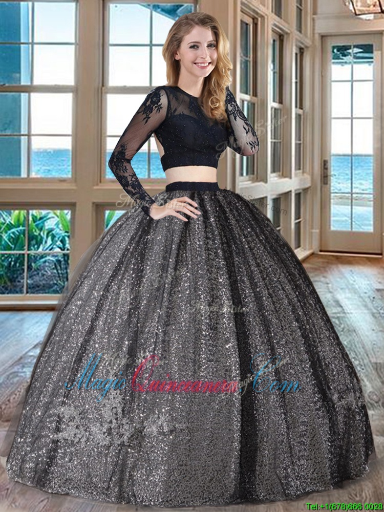 , Dramatic Scoop Long Sleeves Tulle Quinceanera Gowns Appliques Backless