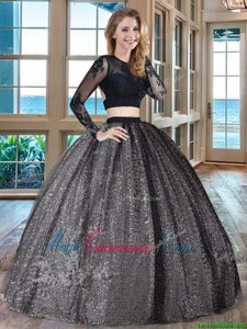 Dramatic Scoop Long Sleeves Tulle Quinceanera Gowns Appliques Backless