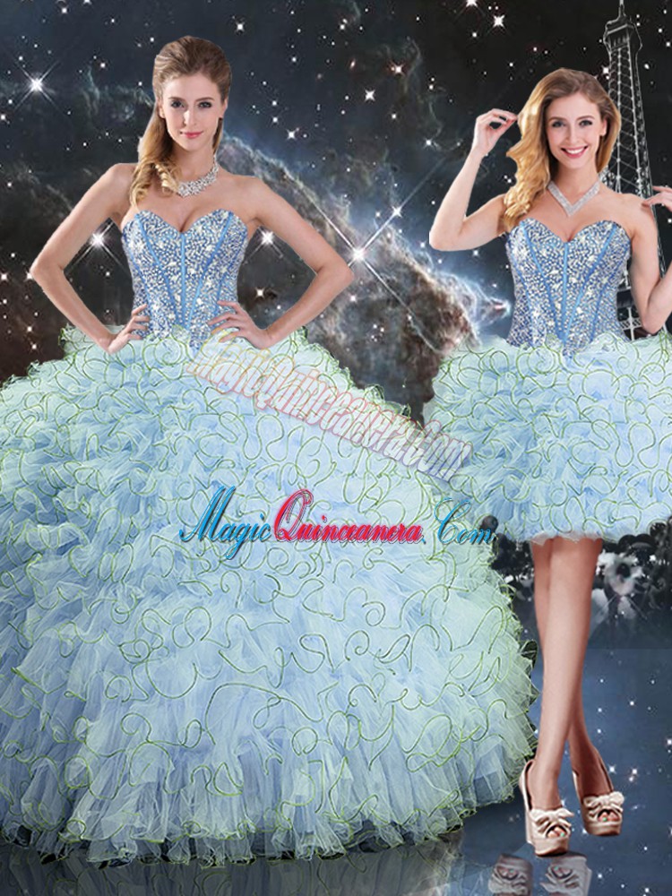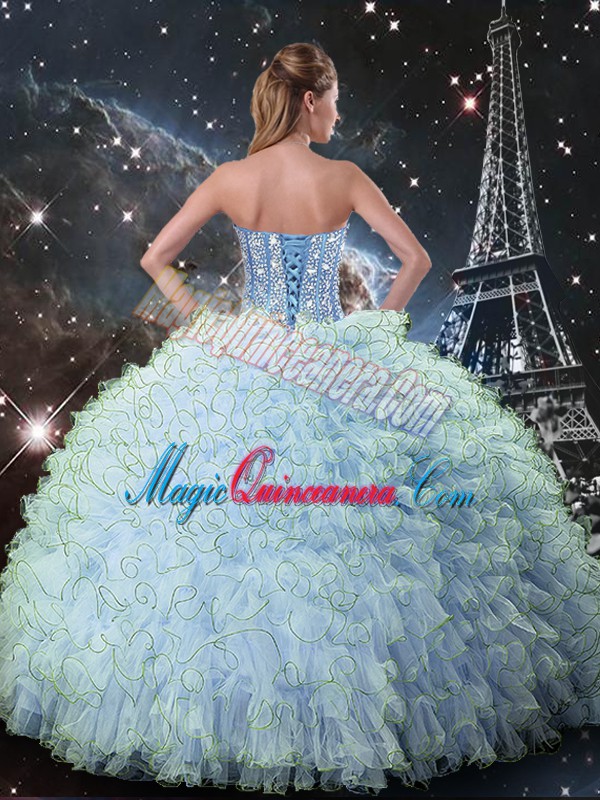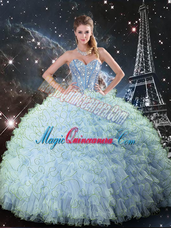 , Dramatic Sleeveless Lace Up Floor Length Beading and Ruffles Quinceanera Gown