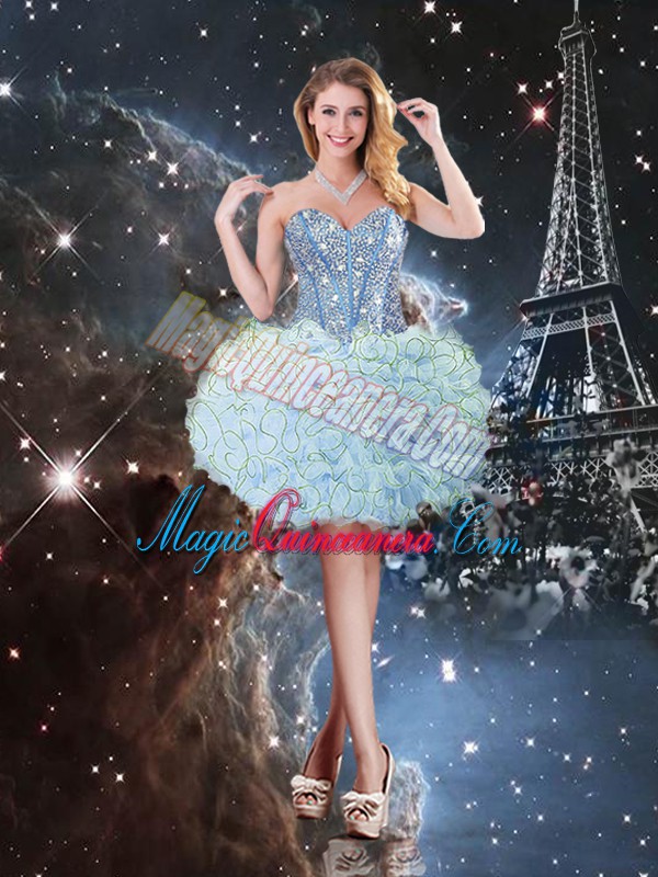Dramatic Sleeveless Lace Up Floor Length Beading and Ruffles Quinceanera Gown