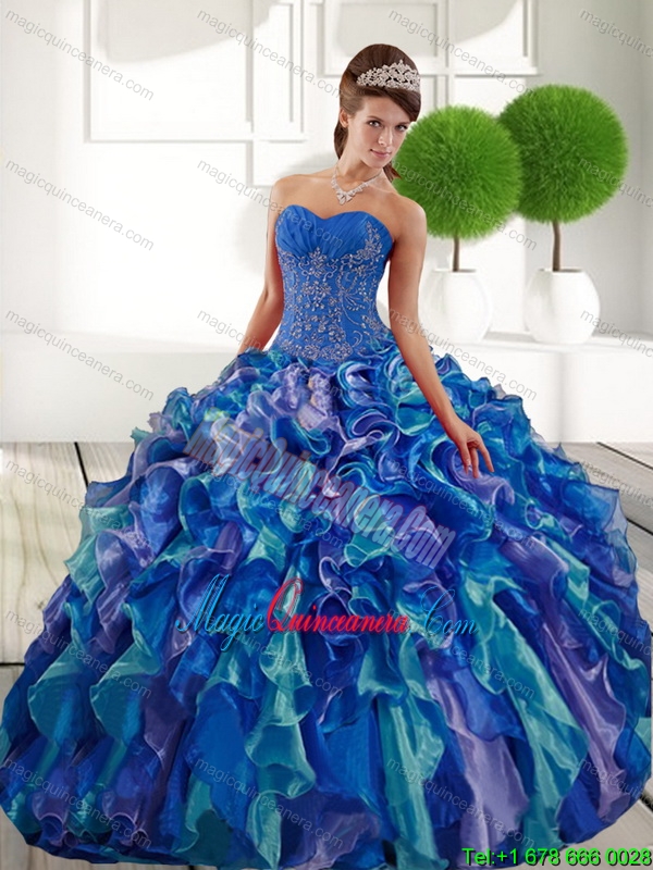 , Dramatic Sweetheart 2015 Quinceanera Gown with Appliques and Ruffles