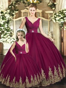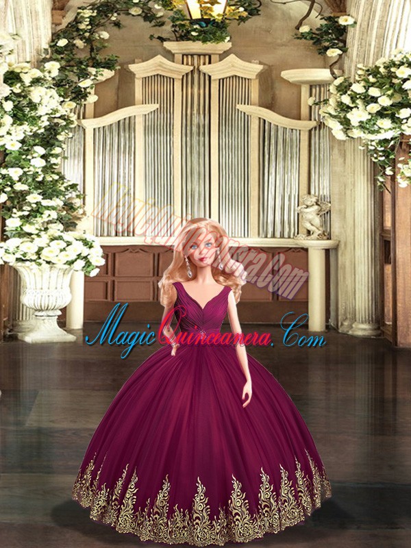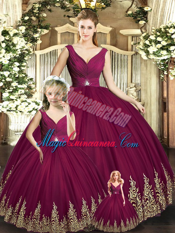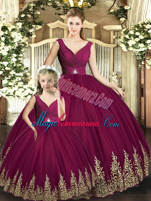 Dramatic Tulle Sleeveless Floor Length 15 Quinceanera Dress and Beading and Appliques