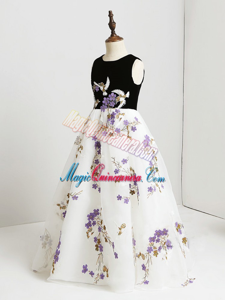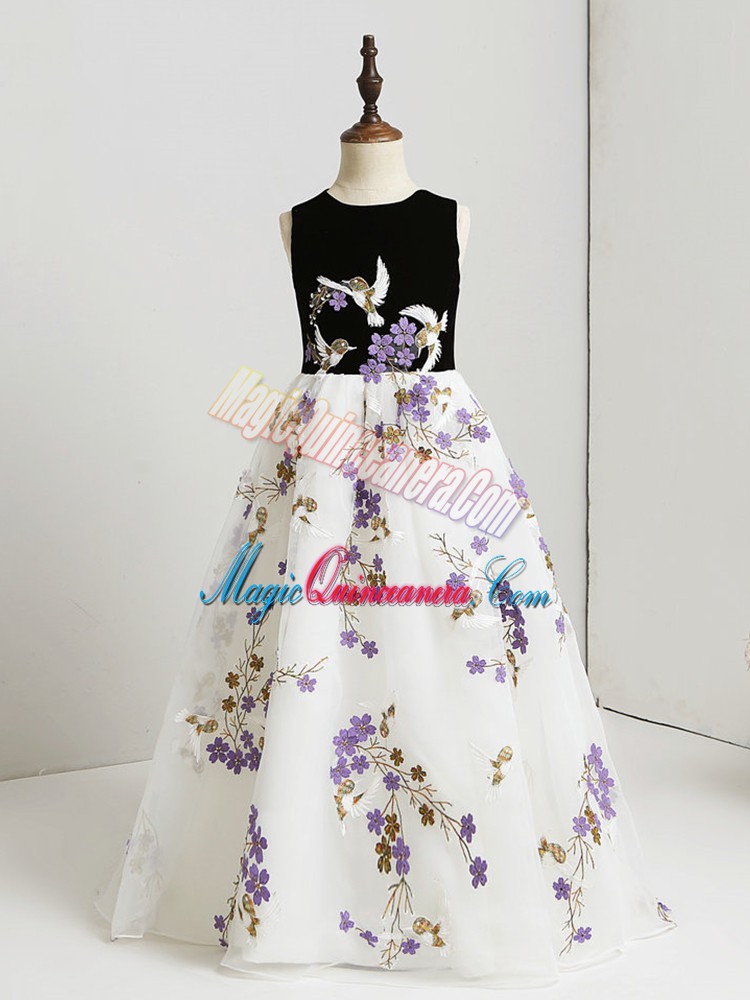Dramatic White A-line Appliques Pageant Gowns Zipper Printed Sleeveless Floor Length