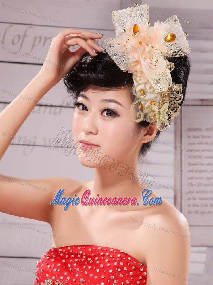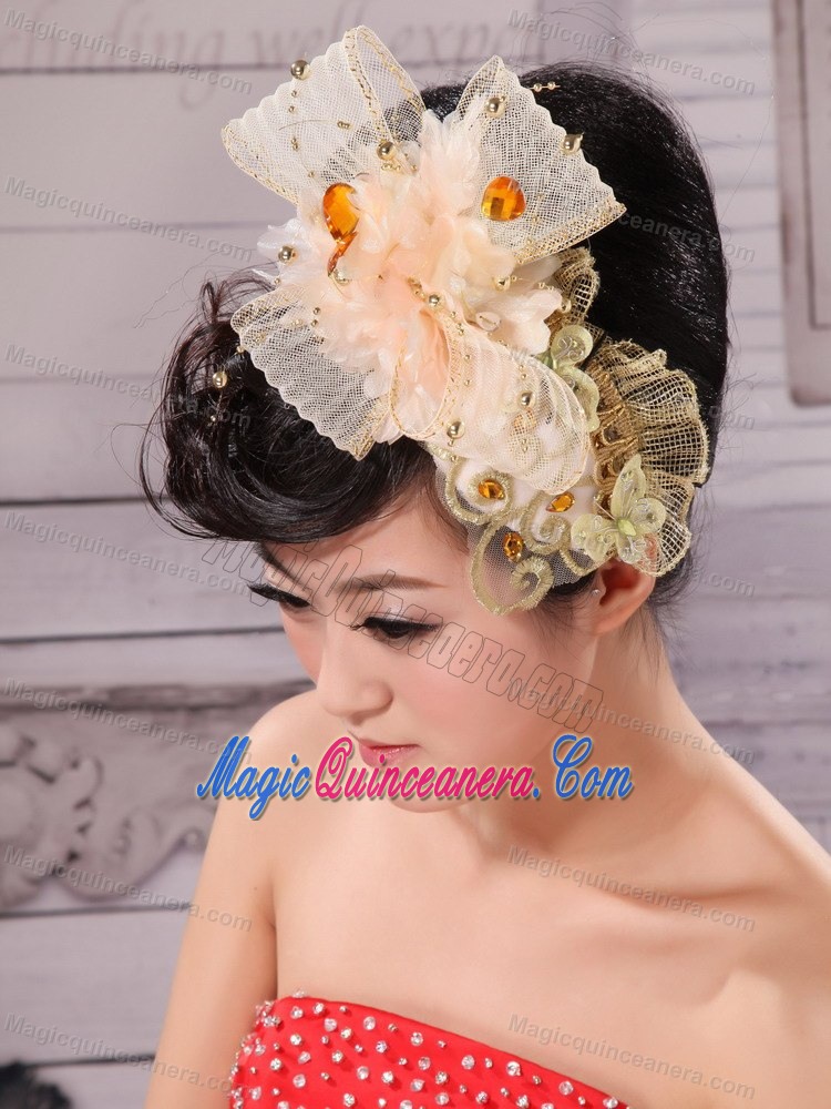 Dream Princess Sweet Pink Net Bride Headdress With Beading