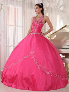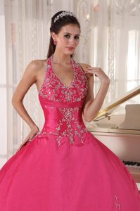 Dressy Red Halter Ball Gown Appliqued Dresses for Sweet 15