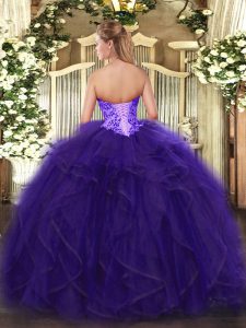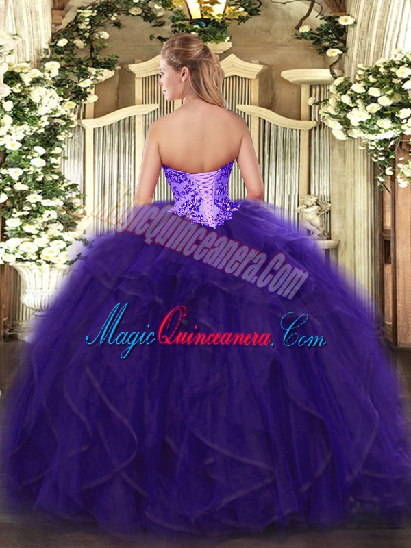 Dynamic Blue Sleeveless Floor Length Appliques and Ruffles Lace Up Sweet 16 Dresses