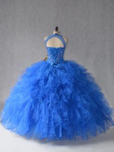 , Dynamic Floor Length Royal Blue Quinceanera Dress Halter Top Sleeveless Lace Up