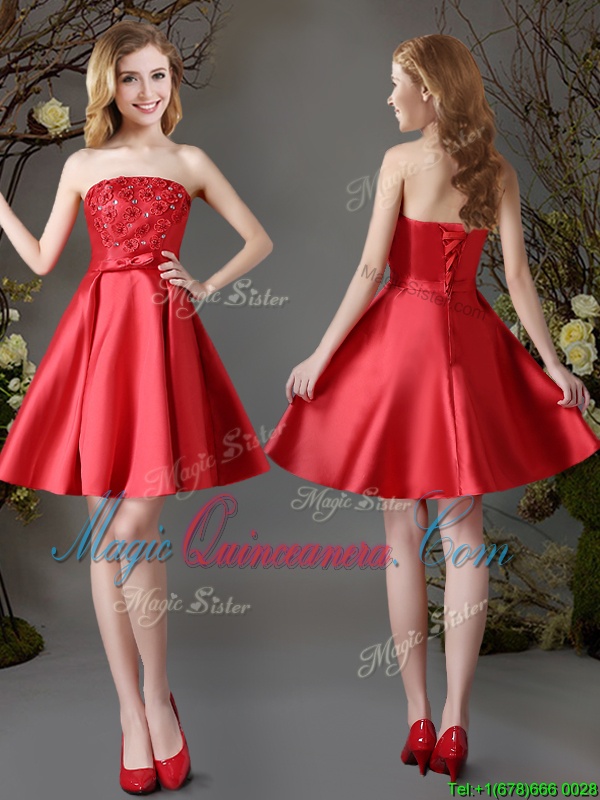 , Dynamic Mini Length A-line Sleeveless Red Court Dresses for Sweet 16 Lace Up