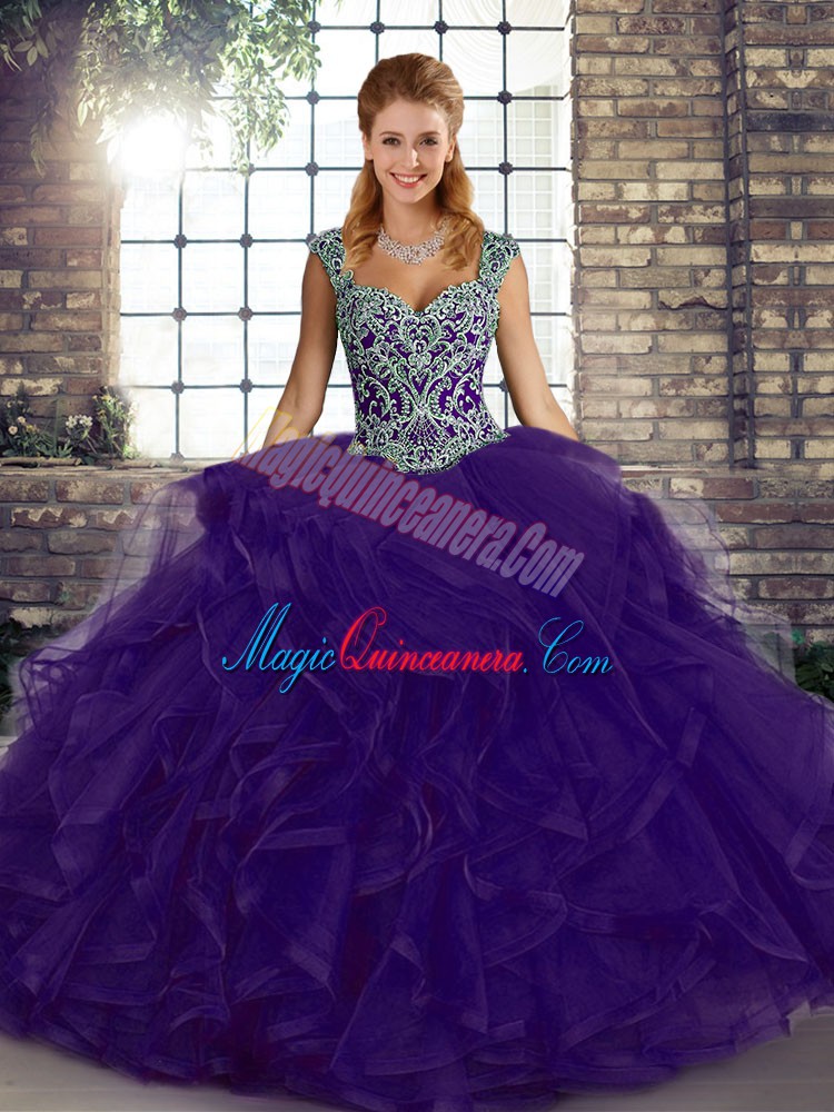 Dynamic Sleeveless Lace Up Floor Length Beading and Ruffles Quinceanera Gowns