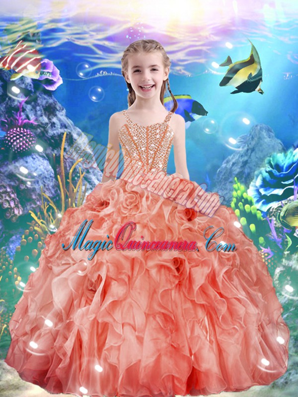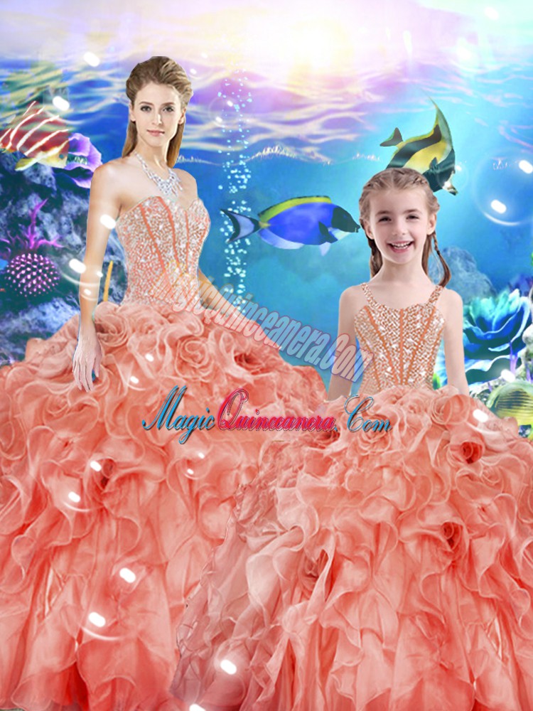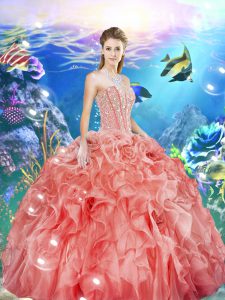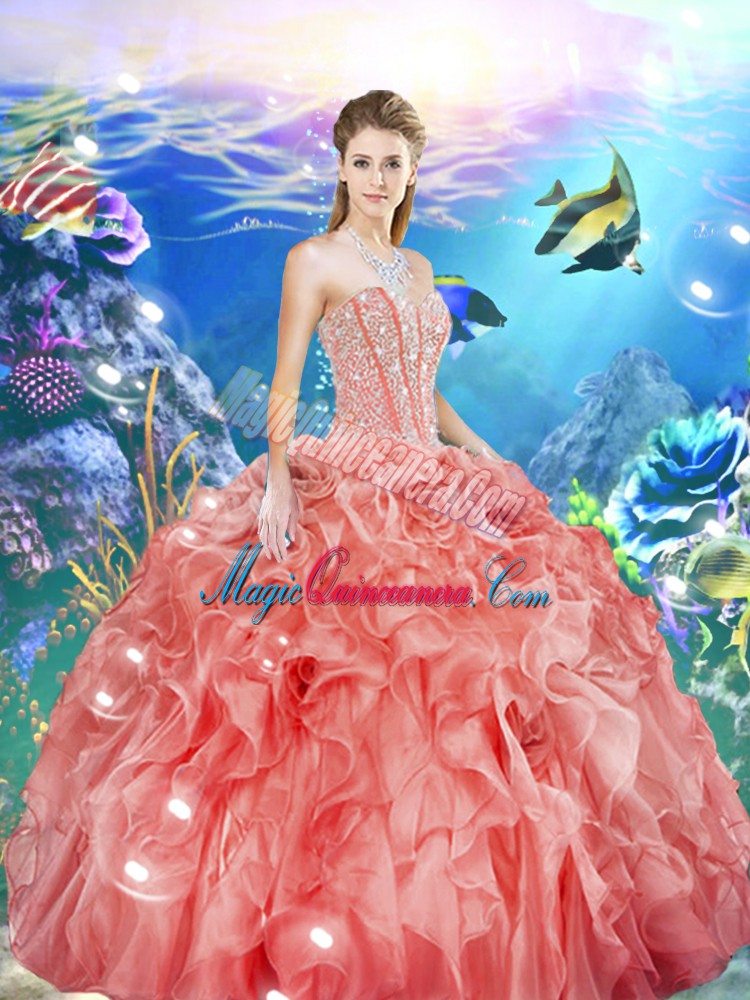 Dynamic Sweetheart Sleeveless Lace Up Quince Ball Gowns Watermelon Red Organza