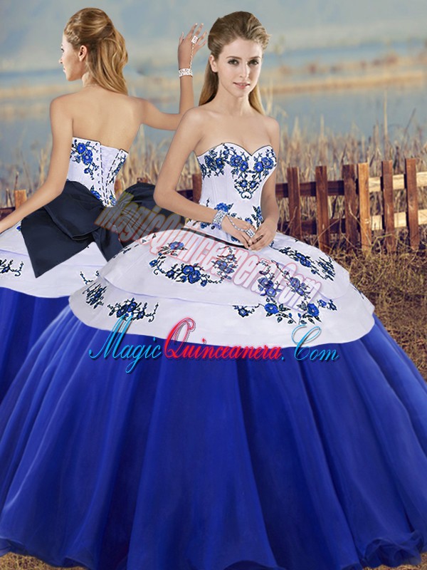 Dynamic Sweetheart Sleeveless Lace Up Quinceanera Gowns Royal Blue Tulle