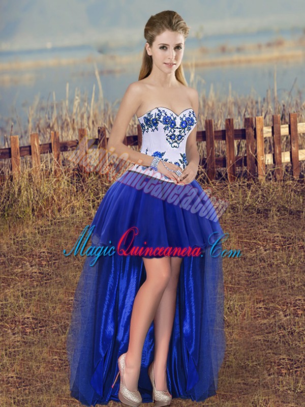 , Dynamic Sweetheart Sleeveless Lace Up Quinceanera Gowns Royal Blue Tulle