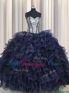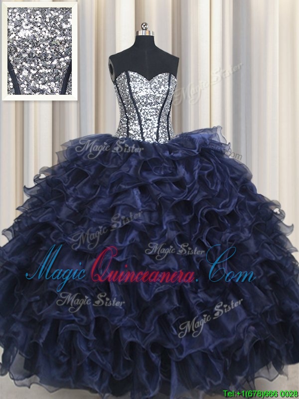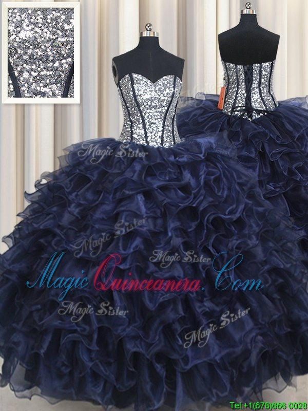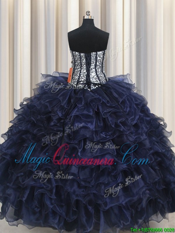 Dynamic Sweetheart Sleeveless Organza Quince Ball Gowns Ruffled Layers and Sequins Lace Up
