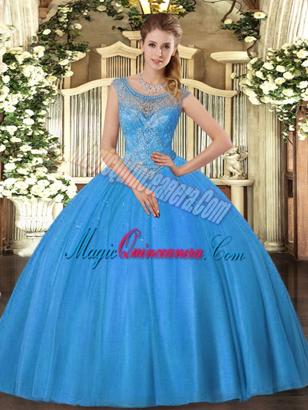 , Edgy Baby Blue Quinceanera Dresses Scoop Sleeveless Lace Up
