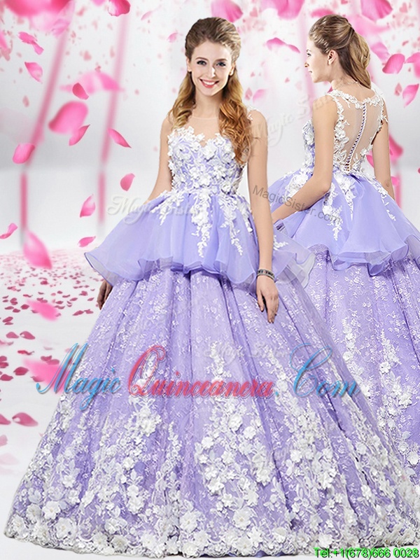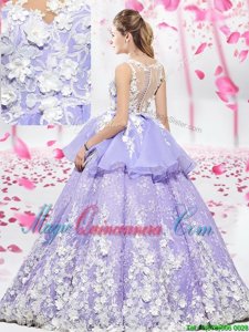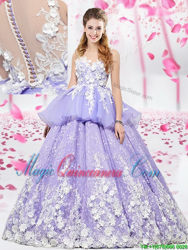 Edgy Ball Gowns 15 Quinceanera Dress Lavender Scoop Organza and Tulle Sleeveless Floor Length Lace Up
