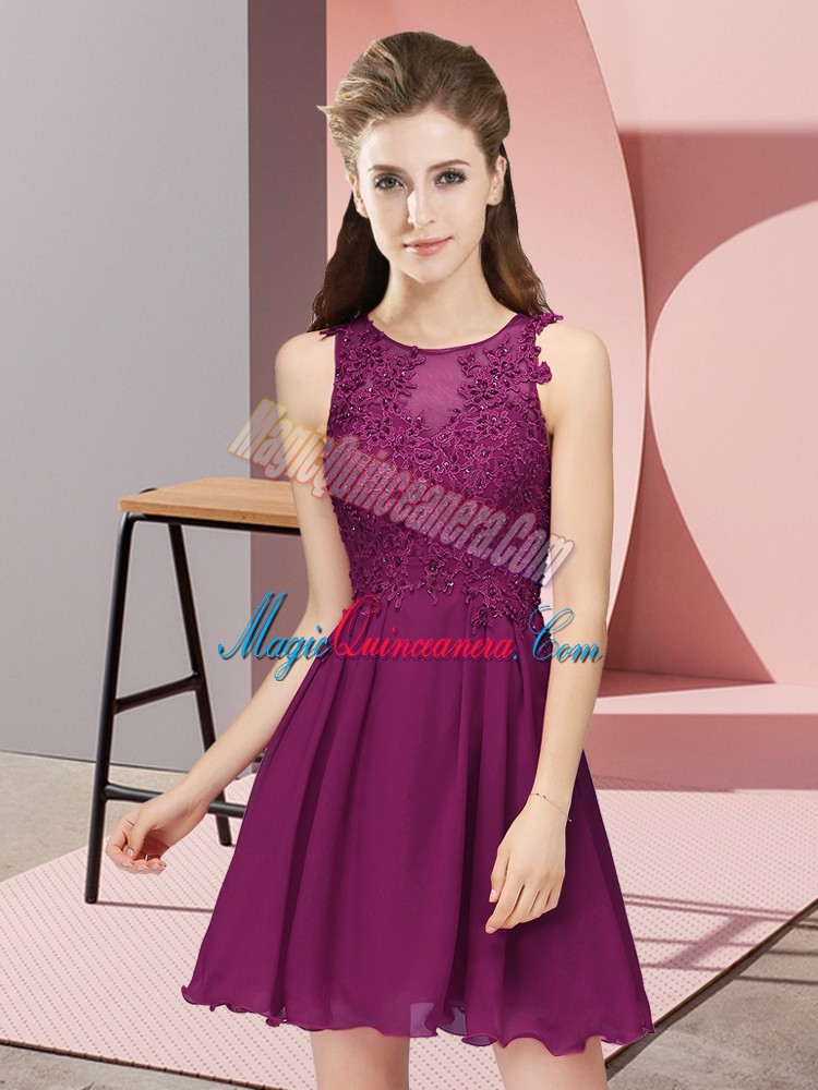, Edgy Chiffon Scoop Sleeveless Zipper Appliques Quinceanera Dama Dress in Dark Purple