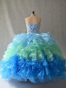 Edgy Multi-color Sweetheart Neckline Beading and Ruffles 15th Birthday Dress Sleeveless Lace Up