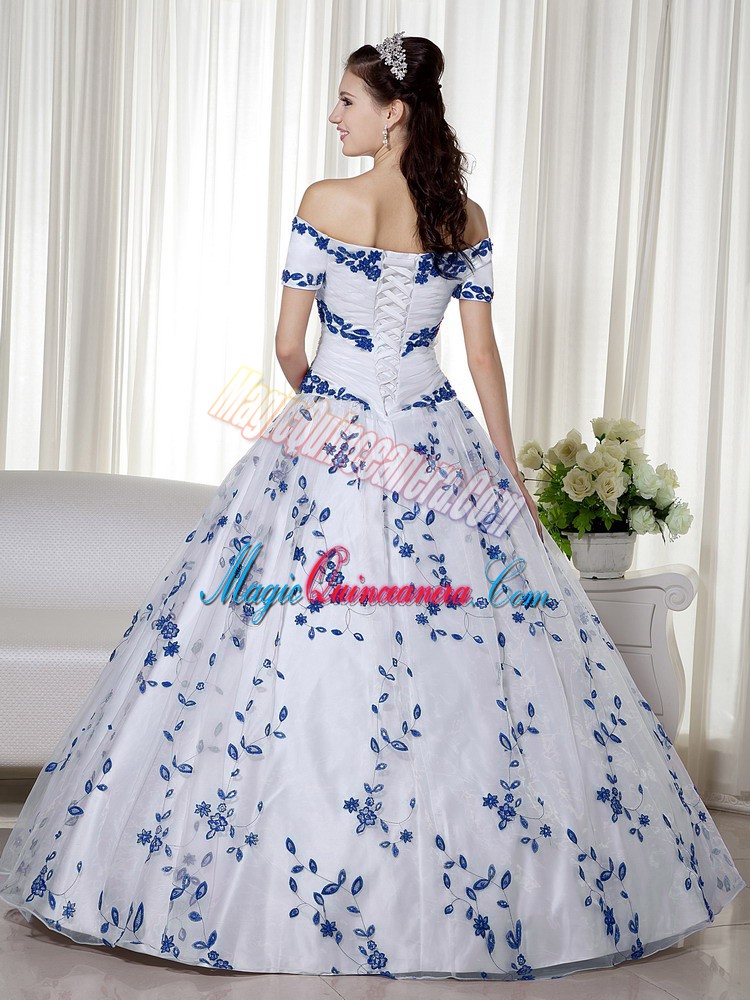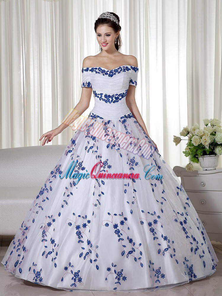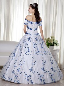 Edgy Short Sleeves Floor Length Embroidery Lace Up Quinceanera Gown with White