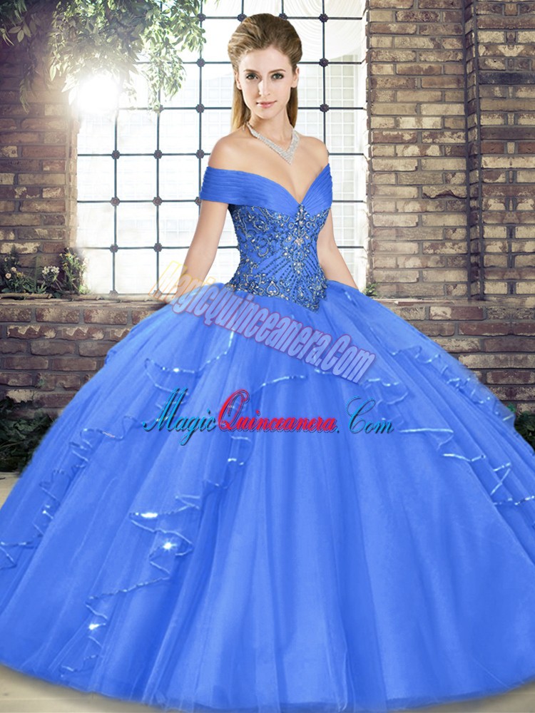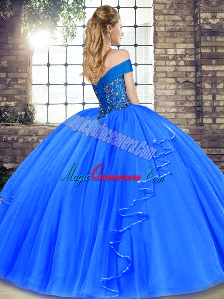 , Edgy Sleeveless Beading and Ruffles Lace Up Quince Ball Gowns