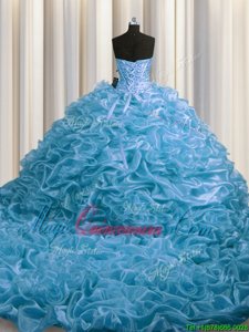 Edgy Sleeveless Court Train Lace Up Floor Length Beading and Pick Ups Ball Gown Prom Dress