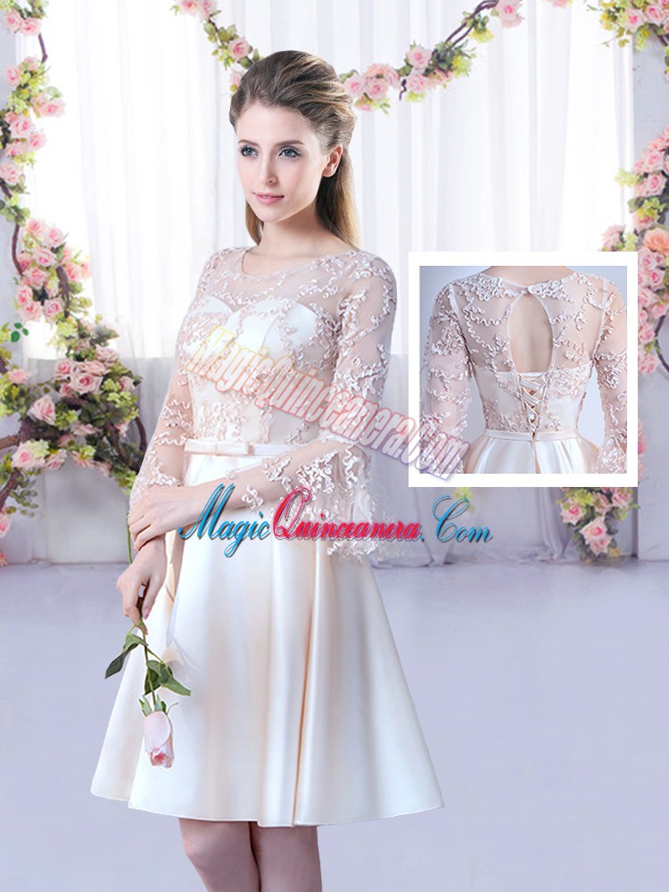 Elegant 3 4 Length Sleeve Lace and Belt Lace Up Vestidos de Damas