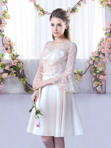 , Elegant 3 4 Length Sleeve Lace and Belt Lace Up Vestidos de Damas