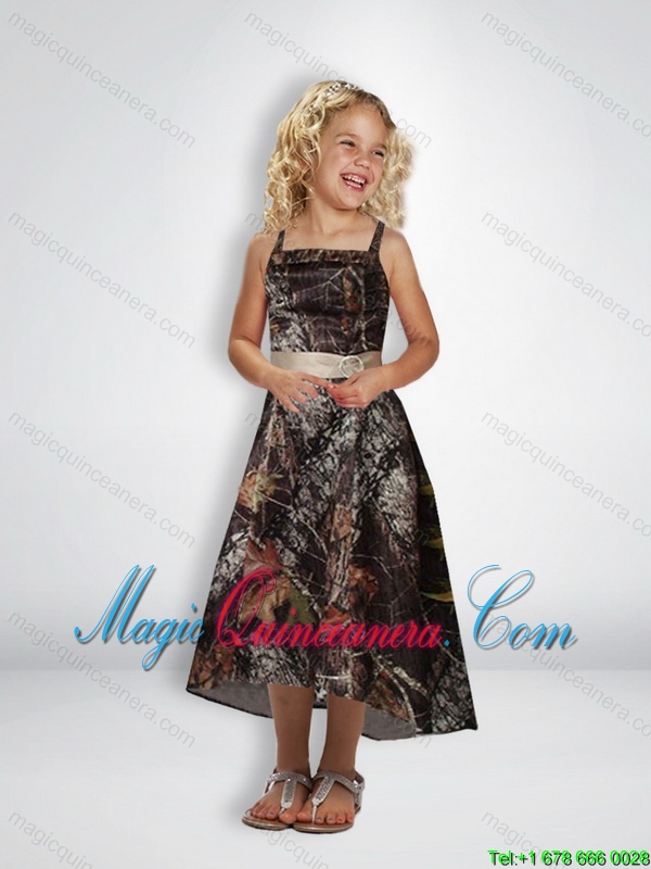 Elegant A Line Straps Tea Length Little Girl Pageant Dress with Beading