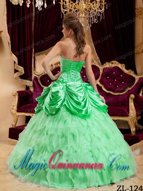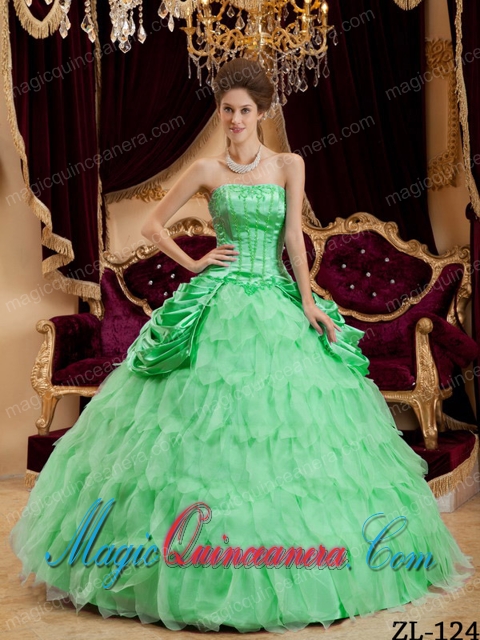 ruffles quinceanera boutique with taffeta, Elegant Apple Green Ball Gown Strapless Ruffles Taffeta and Organza Quinceanera Dress