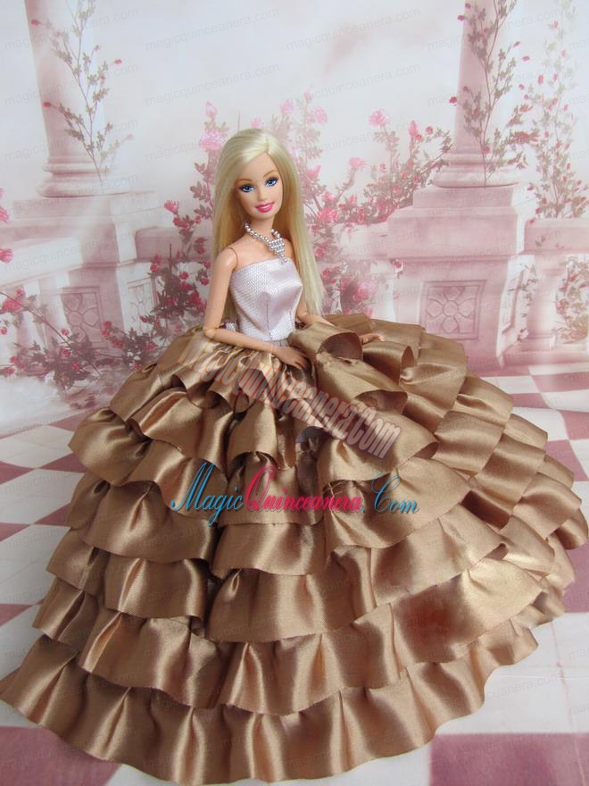 Elegant Ball Gown Ruffles Layers Brown Barbie Doll Dress