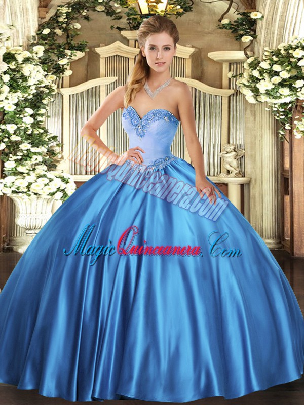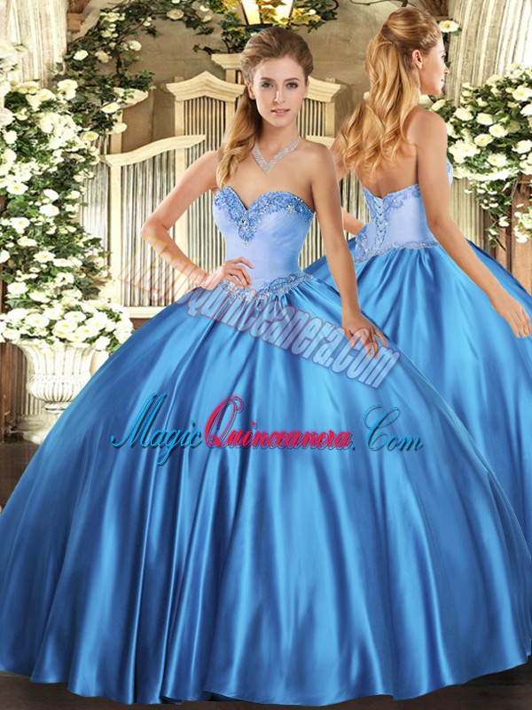 Elegant Floor Length Lace Up 15 Quinceanera Dress Baby Blue for Military Ball and Sweet 16 and Quinceanera with Beading