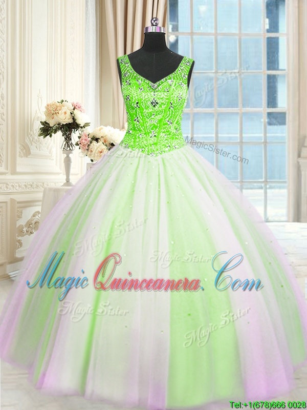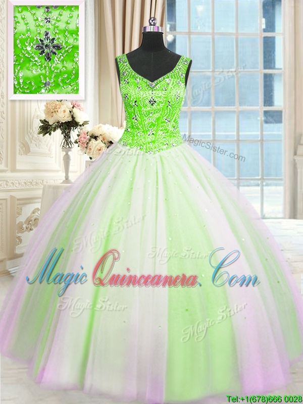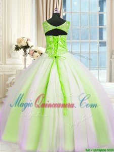 , Elegant Floor Length Multi-color Sweet 16 Dress Tulle Sleeveless Beading and Sequins
