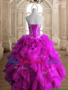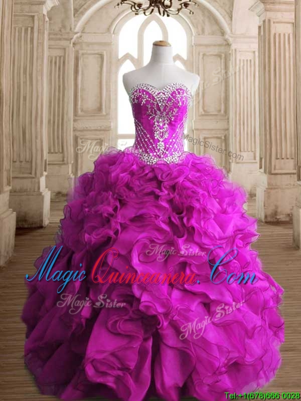 Elegant Fuchsia Organza Quinceanera Gown with Beading and Ruffles