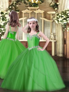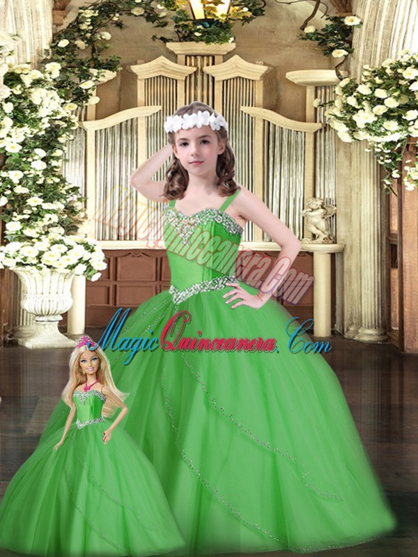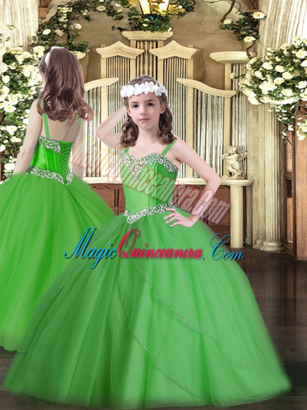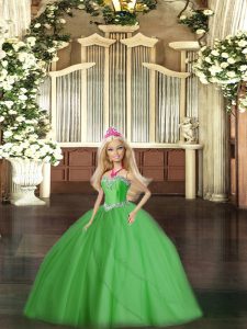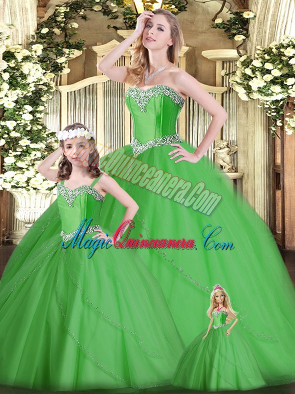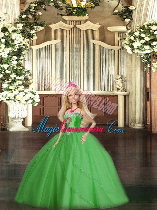 Elegant Green Sleeveless Tulle Lace Up Quinceanera Dresses for Military Ball and Sweet 16 and Quinceanera