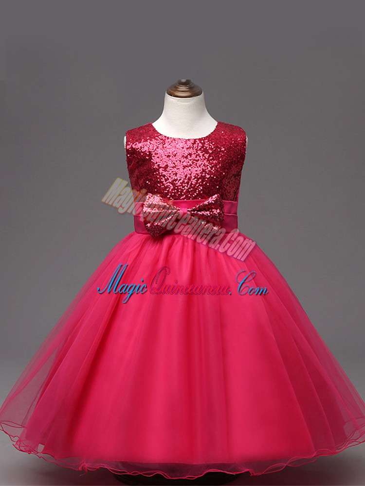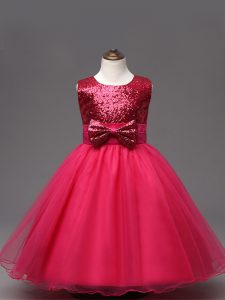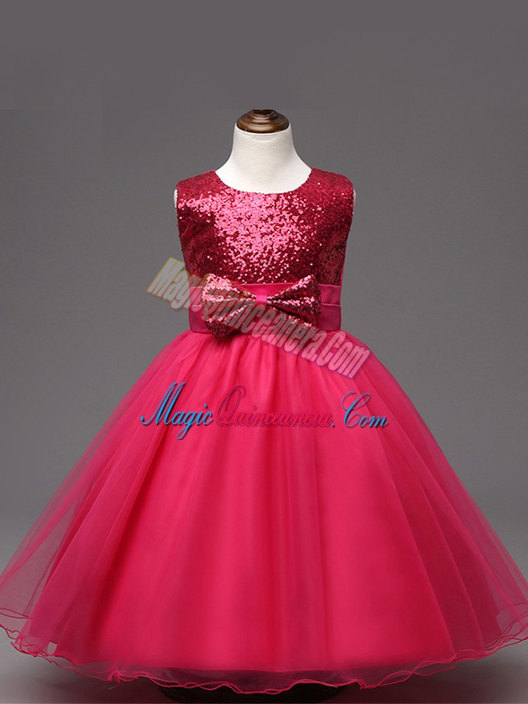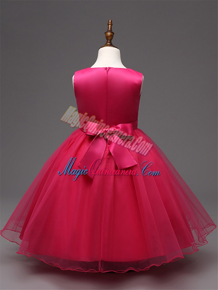 Elegant Hot Pink Sleeveless Organza Zipper Pageant Dresses for Wedding Party