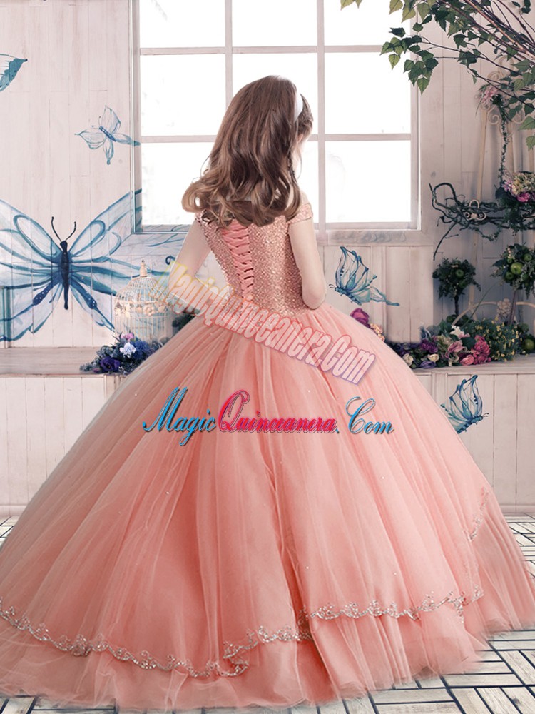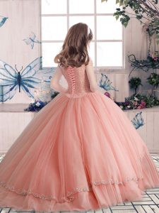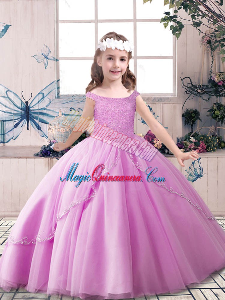 Elegant Lilac Lace Up Off The Shoulder Beading Child Pageant Dress Tulle Sleeveless