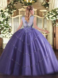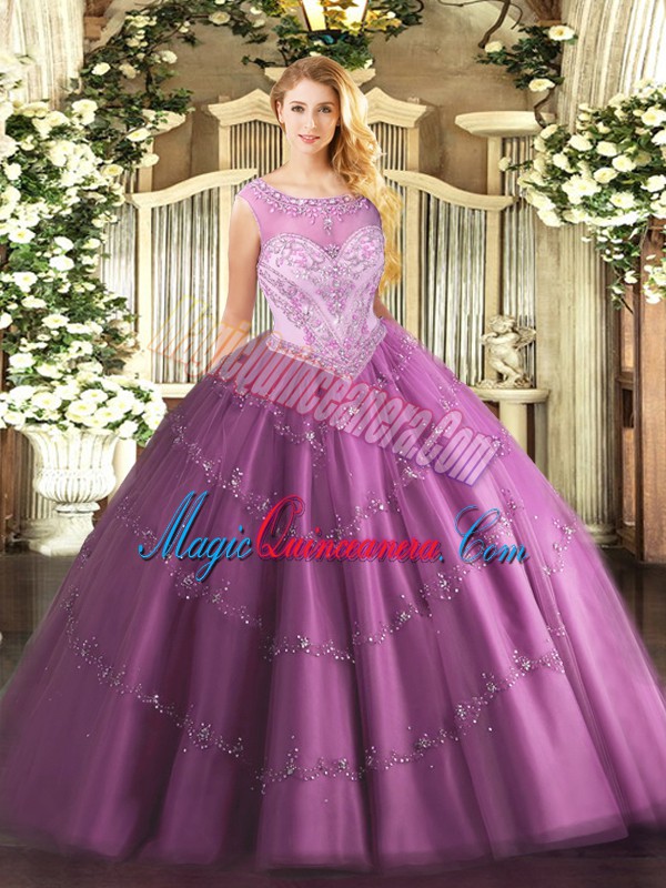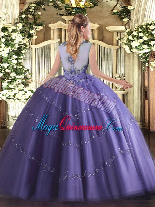 Elegant Lilac Tulle Zipper Scoop Sleeveless Floor Length Sweet 16 Quinceanera Dress Beading