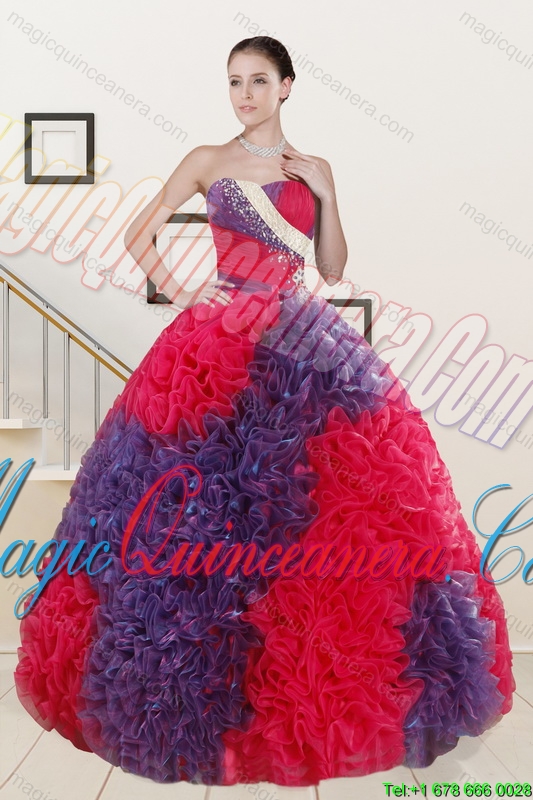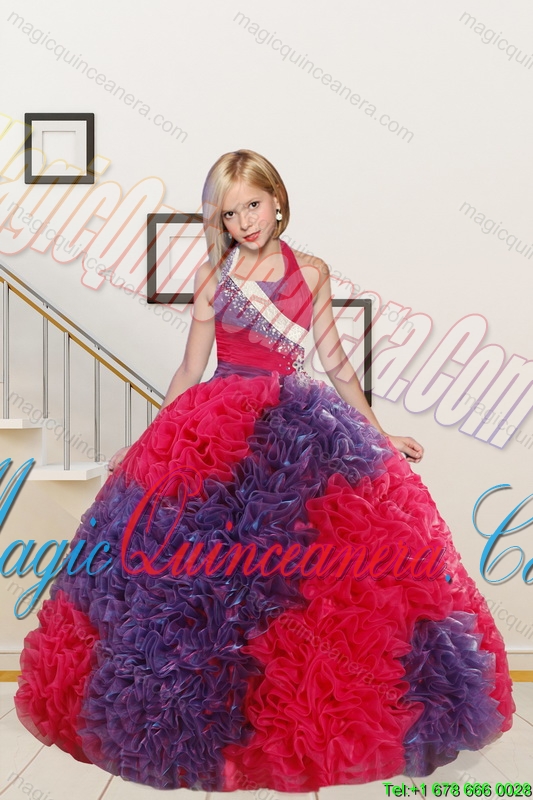 , Elegant Multi Color Floor Length Quinceanera Dress and Ruching Short Dama Dresses and Multi Color Halter Top Litter Girl Dress