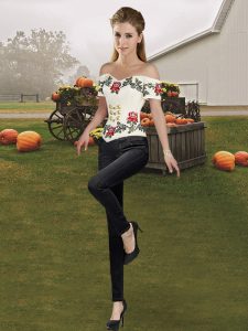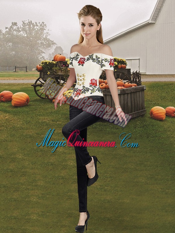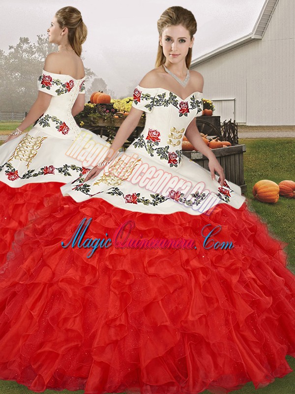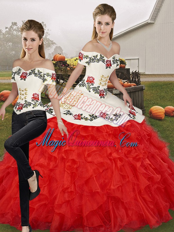 Elegant Organza Sleeveless Floor Length Ball Gown Prom Dress and Embroidery and Ruffles