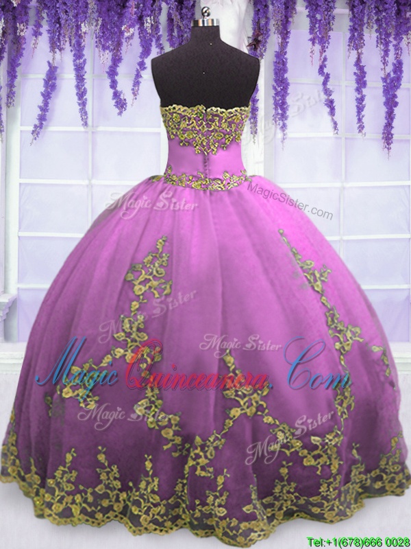 Elegant Purple Quince Ball Gowns Military Ball and Sweet 16 and Quinceanera and For with Appliques Strapless Sleeveless Zipper