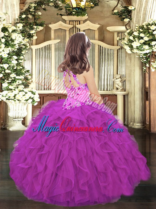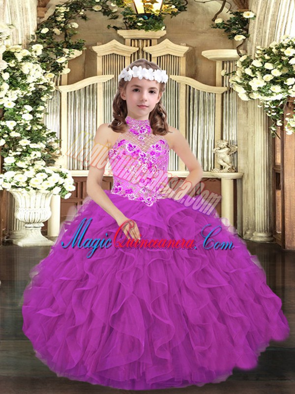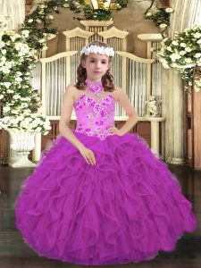Elegant Purple Sleeveless Embroidery and Ruffles Floor Length Pageant Dress for Teens